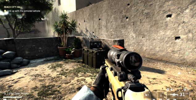 позицию. Следуйте за командой сквозь повреждённый жилой комплекс, пробираясь