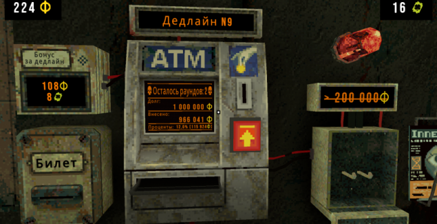 Чем-то мы провинились, и теперь наша задача — использовать игровой автомат, чтобы получать с его помощью монеты и вносить указанную сумму в приёмник. Вот только время ограниченно — сделать это нужно за три раунда, по-иному люк в полу откроется и мы рухнем в яму. Но даже если долг будет погашен, никуда нас отпускать не станут — появится новоиспеченная сумма, а вместе с ней и новый дедлайн, и так до бесконечности. Это бездонная долговая яма, однако с самого начала есть подозрение, что какой-то шанс выкарабкаться всё же имеется, — дверь ведь не просто так сделали интерактивным объектом?..