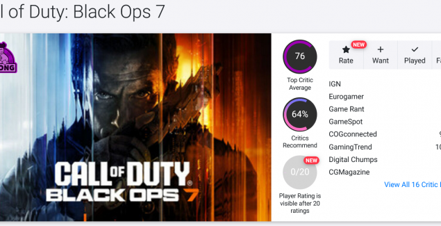 При этом на агрегаторах рецензий оценки Call of Duty: Black Ops 7 придерживаются на уровне в ~75 баллов, но обзоров пока немного. В WindowsCentral историю назвали «интригующей», а в GamesRadar+ — «не слишком запоминающейся, но достойной прохождения». Мультиплеер получил преимущественно позитивные оценки, что, вероятно, повлияло на итоговые баллы.
