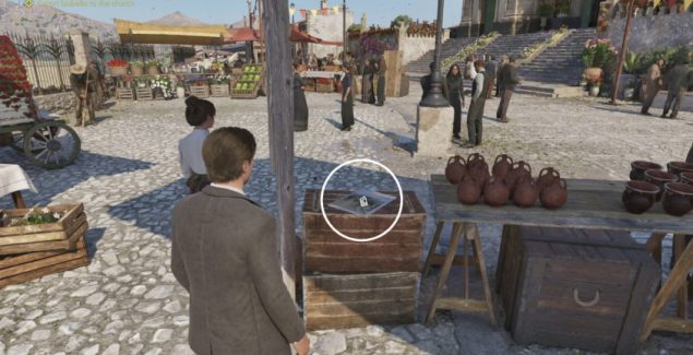 Как лишь начнётся глава, вы должны будете сопроводить Изабеллу в юго-западную часть Сан-Челесте. Садитесь в машину и отправляйтесь в линия. Многие дороги будут перекрыты, так что обязательно следуйте указателям. При достижении маркера вы автоматически выйдите из автомобиля и будете сопутствовать Изабеллу уже пешком. Выйдя из машины, следуйте за Изабеллой вверх по ближайшей лестнице, через улицы, пока не дойдёте до базара у церкви. Здесь она остановится, чтобы поговорить позже. Поговорите с девушкой. После беседы сопроводите её к рыночным лоткам у основания лестницы, ведущей к храмы. Здесь цели обновятся. Вам нужно найти что-то для Изабеллы, пока она ожидает вас около ступеней. Можно проверить первоначальный лоток слева — там находится записка. Всего на рынке три лотка, с которыми можно взаимодействовать. Нас интересует тот, на котором возлежат цветы (в конце рынка). Как только вы с ним взаимодействуете, Энцо получит цветок. После этого поговорите с Изабеллой, какая будет стоять у лестницы, ведущей в церковь. На ящиках рядом с ней есть записка. Поднимитесь по лестнице и взаимодействуйте с дверями храмы — начнётся кат-сцена.