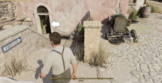 Глава начинается с задания по сопровождению. Присядьте на отмеченную лошадь и следуйте за повозкой Луки. Перед выездом коллекционных предметов поблизости нет, да и отставать от Луки вам вновь не позволят. Придя на место, слезьте с лошади и возьмите коробку из повозки. Откройте ворота — начнётся кат-сцена, где представят Паскуале, основного торговца новоиспеченным снаряжением и улучшениями. Откройте ящик на столе, чтобы получить первые динари — основную внутриигровую валюту криминального мира, используемую для покупки экипировки. Здесь же объяснят, что такое тринакрия — артефакты, которые можно обменивать на динари в лавке Паскуале по курсу 100 динари за 1 тринакрию.