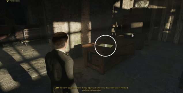 В начине главы вы управляете автомобилем вместе с Чезаре. Следуйте по маркеру на сыромятню. Прибыв на место, оба персонажа выйдут из машины. Придитесь к Лео, который ждёт неподалёку, и он проведёт вас к двери. Взаимодействуйте с ней, чтобы попасть внутрь и увидеть кат-сцену.