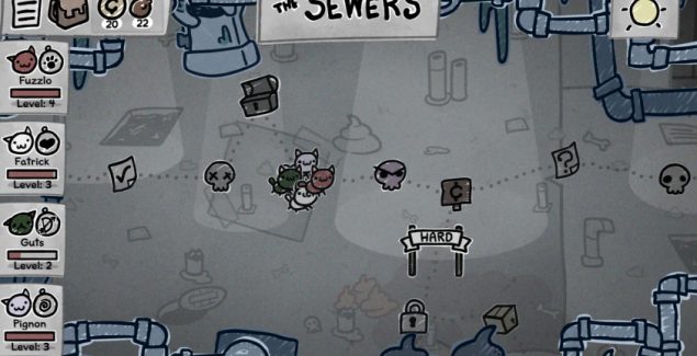 Это максимально короткое описание игры, которое затрагивает лишь малую часть того, что она предлагает. Здесь так много механик и тонкостей, что Макмиллен впервые разрешил сделать полноценный туториал — он не затянутый, но в то же время объясняет всё, что нужно знать. Поначалу игроку даже дом не показывают, а попросту предлагают выбрать двух полюбившихся котов и сразу отправиться с ними в путешествие в тёмный переулок. Путь к финишу поделён на этапы: несколько зон со сражениями (в том числе с боссами), пара случайных событий, сундуки с призами внутри, магазины и так дальше. В туториале сворачивать с дорожки нельзя, но уже там замечаешь, что в какой-то момент разблокируется усложнённый режим — после первого босса можно будет отправиться по альтернативному линии, где наград больше.