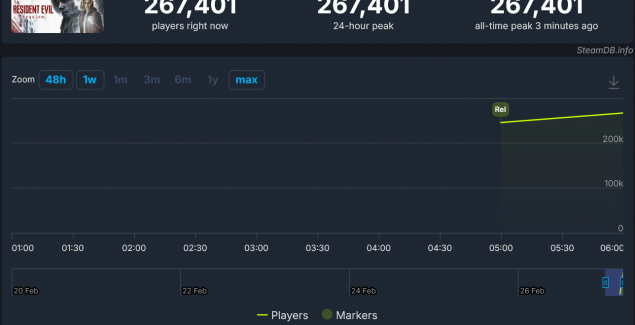 Спрос на проект оказался огромным — в первый час пиковый онлайн на ПК пробил оценку в 267 тысяч человек, что является абсолютным рекордом для франшизы Capcom и третьим по величине запуском компании в цельном — на первых двух местах располагаются мультиплеерные игры Monster Hunter Wilds (1,38 миллиона человек) и Monster Hunter World (334 тысячи человек). Учитывая, что спереди выходные, у Resident Evil Requiem есть все шансы подняться на второе место, ещё сильнее оторвавшись от ремейка Resident Evil 4.