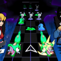 Проходить сюжетный режим поначалу тяжеловато. В графический манера а-ля старый околоанимешный мультсериал с VHS влюбляешься сразу же — очаровательные двухмерные персонажи бегают по ярким 3D-локациям. Но на любом шагу возникает ощущение, что разработчики тянут время. То диалоги слишком долгие, то вас вынуждают чего-то ждать и болтаться из угла в угол, то нужно слишком много времени тратить на пробежки от одного края карты к другому. Порой неясно, чего от тебя хотят и в какую сторону держать путь, и теряешь несколько минут, если промахнулся. А главное, до финальной погони в первой главе вообще нет сюжетных сцен с ритм-механиками.