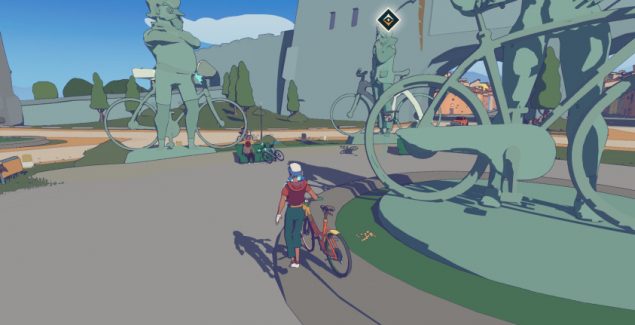 Велосипед тут ощущается по-особенному — не вечно удобно, но именно как велик, а не как мотоцикл или утюг на льду. Сдать назад, как и положено, нельзя — нужно спешиться и собственно, ножками развернуться и подойти куда хотели. Помимо набора и сброса скорости, есть вариант ехать не крутя педали — это помогает лучше маневрировать и контролировать байк при дрифте и входе в завороты.